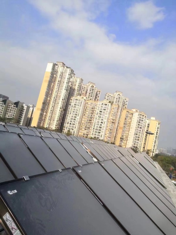 2:阳极氧化平板太阳能热水工程系统 1:太阳能热水工程原理 太阳能热水器是将太阳光照转化为热能,将水从低温加热到高温,以满足人们在生活、生产中的热水使用装置。太阳能热 水器由集热器、储水箱及相关附件组成,把太阳能转换成热能主要依靠集热器。集热器分平板式太阳热和真空管式太阳热两 种。其原理是集热器受阳光射面加温,利用热水上浮、冷水下沉的原理,使水产生微循环而达到所热水。 性能特点 * 太阳能水质洁净,清洁卫生,无污染,具排污净化功能。 * -次投资,长远受益,节省电费,燃料费,1-2年即可收回投资,受益时间长达15年。 * 太阳能集热器传热性能好,表面处理工艺高,吸热能力强。 * 系统保温性能好,蓄热能量大,热量损失少。 * 保温水箱有蓄水功能,可满足大量人员集中用热水,亦可做停水时应急水源之用。 * 系统安全可靠,全电脑自动控制,静态运动,无噪音,无污染,环保节能。 * 配套辅助加热方式,空气能,电能,各式工业余热,阴雨天可照常用热水。 * 保温水箱为双层304不锈钢,进口聚案脂整体发泡保温,保温层厚度大于50mm。 * 取热方式;自然循环或强制循环。 详细信息: 1、平板集热器设计标准 GB/T6424-2007《平板型太阳能集热器》 GB/T4271-2007《太阳集热器热性能实验方法》 GB/T19141-2003《家用太阳热水系统技术条件X》 欧盟EN12975 2、集热器技术说明 * 真空磁控溅射涂层,热吸收率290%+2,发射率s10%±2,是当前世界集热效率最高的太阳能吸热涂层 * 边框采用加厚型铝合金,保证产品使用寿命超过20年。同时设有专用防风连接件卡槽,确保了户外固定强度 侧/底保温均采用超细玻玻棉材料整体保热损系数更低,温性能更好 * 玻璃采用超白低铁布纹钢化玻璃,强度是普通玻璃的四倍,透光率达到91.5%以上。在保证集热效率的同时,充分考虑了集 热 器户外使用的安全 * 流道为TP2紫铜管,自动加压测试设备试验压力12Mpa,确保在系统中承压运行。 * 不锈钢支架或镀锌角钢。 |